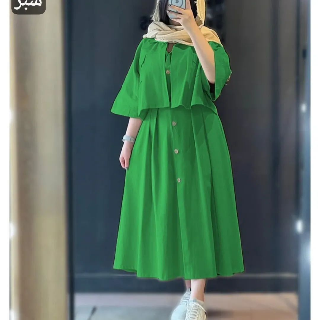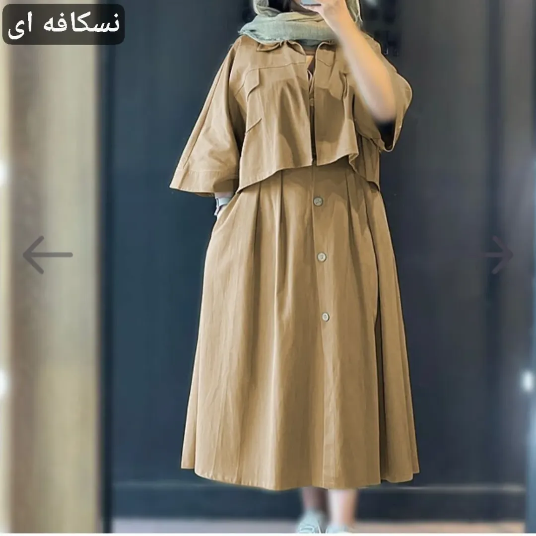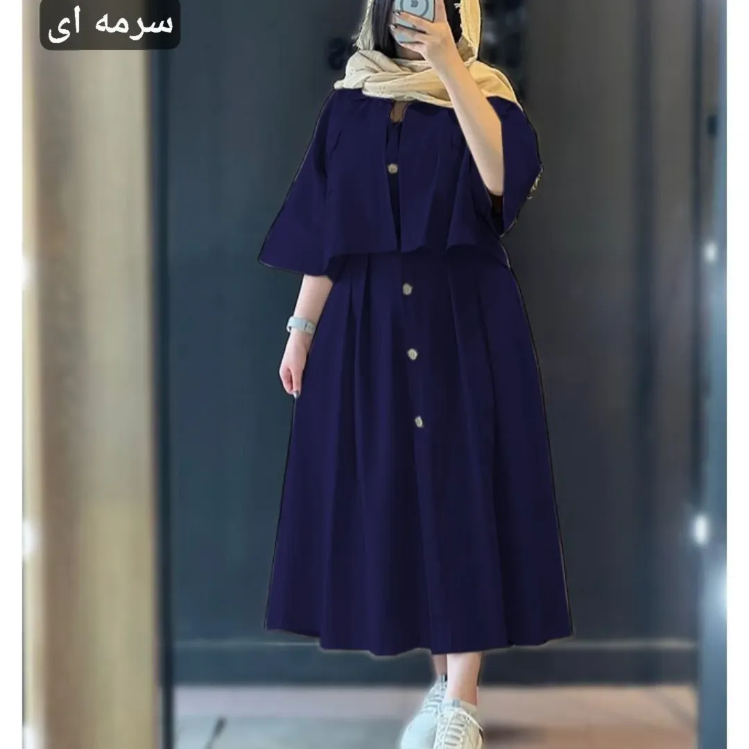 شناسه : نام : کت سارافون شزنی ل اعلا رنگ بندی : پسته ای, زرشکی, سبز, سرمه ای, شیری, کرم, مشکی, نسکافه ای سایز ها : فری ۳۶تا۴۶ قد کت ۵۱دورسینه ۱۱۴قد آستین از یقه ۶۱ دور بازو ۴۲ قد سارافون ۱۲۰ دورسینه ۱۰۶ جلو دکمه تا پاین باز میشود